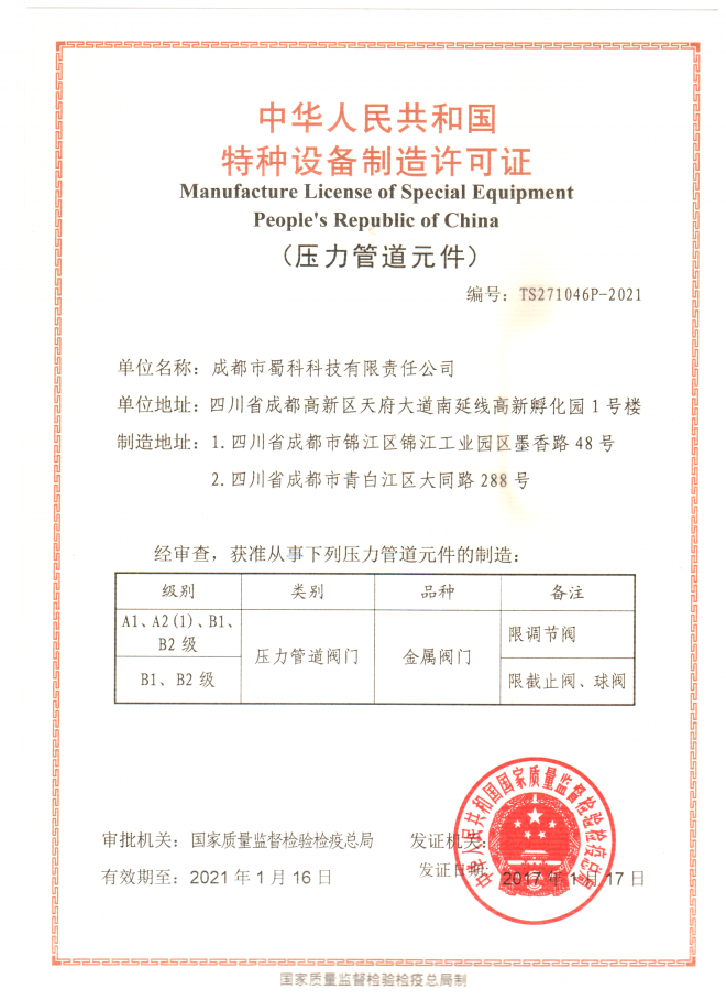 首頁(yè) > 資質(zhì)認(rèn)證 > 壓力管道閥門(mén)A1資質(zhì) 壓力管道閥門(mén)A1資質(zhì)