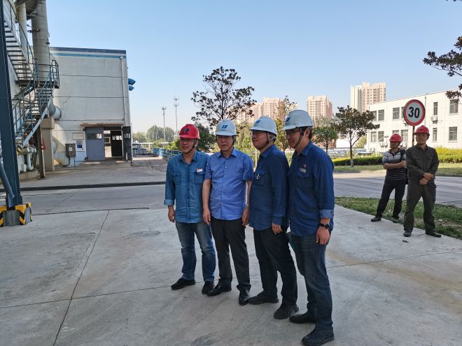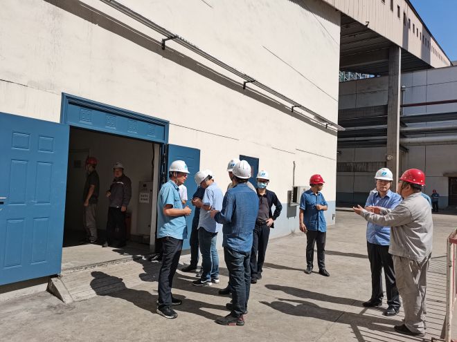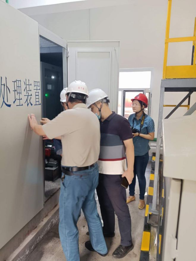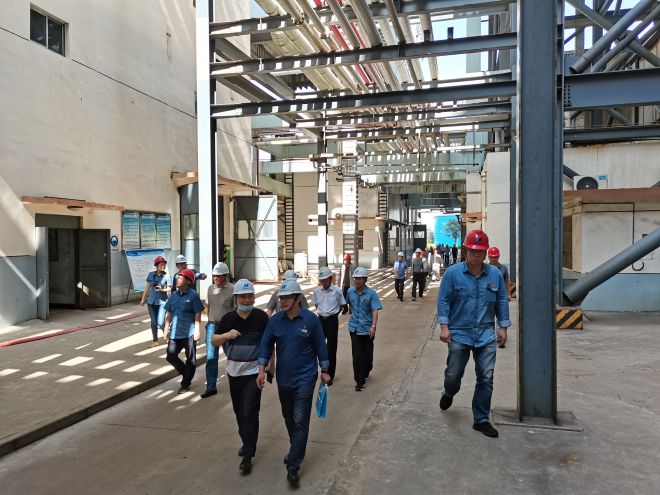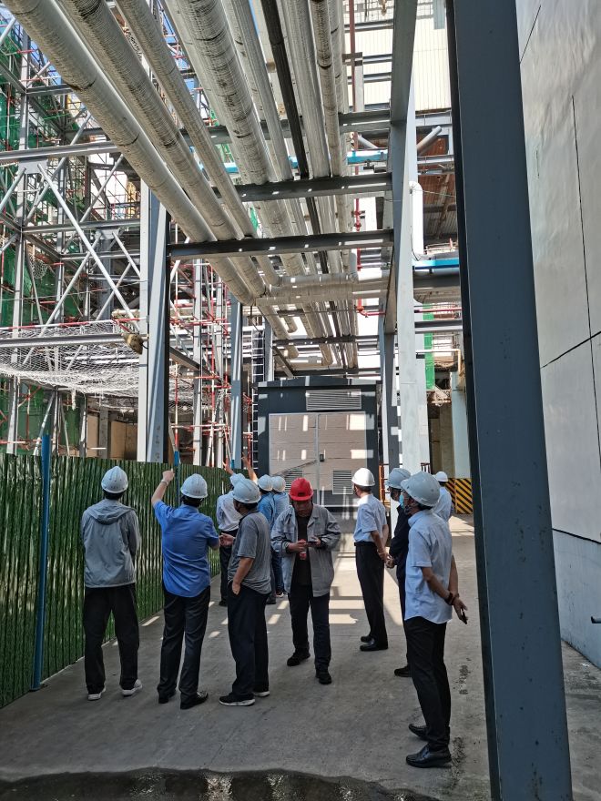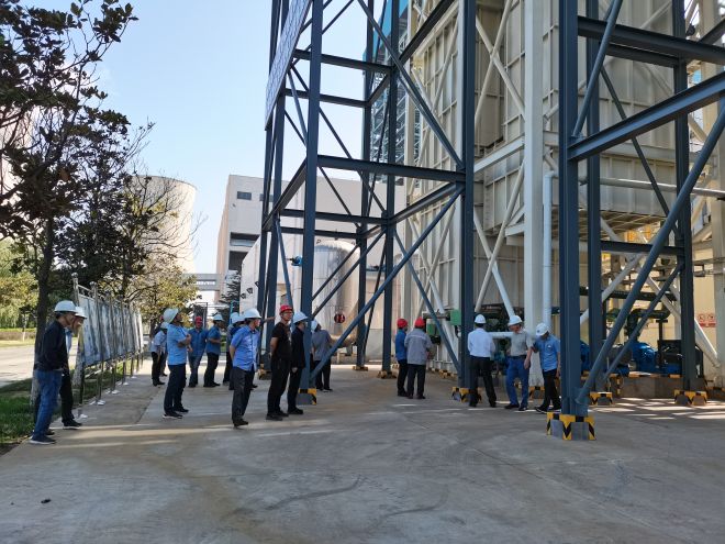 會議結(jié)束后,邀請各位到廠專家及領導、參會人員進行現(xiàn)場參觀。參觀路線從項目1#濃縮塔開始,路經(jīng)空壓機房、2#濃縮塔施工現(xiàn)場、廢水綜合樓。使大家對于低溫煙氣濃縮+主煙道蒸發(fā)干燥工藝有了更深刻的認識和了解。